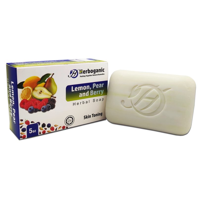 - Soothes and rejuvenates skin: Herboganic’s Lemon, Pear and Berry Herbal soap is infused with the essence of these fruits which gently cleanse and revitalize your skin, leaving it feeling toned and refreshed.