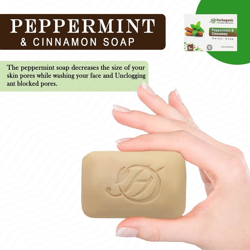- Soothes and rejuvenates skin: Herboganic’s Peppermint and Cinnamon Herbal soap is infused with Peppermint and Cinnamon extracts which gently cleanse and soothe your skin, leaving it feeling revitalized and refreshed.