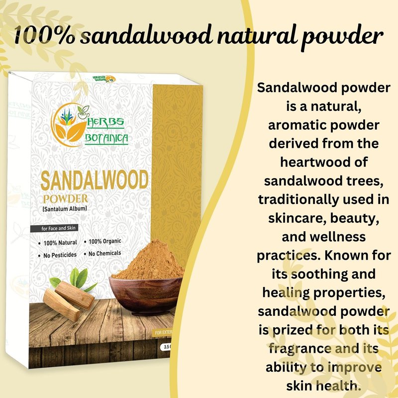 Do not fall for fancy packaging and fancy offers. If you are looking for pure sandalwood powder, try our brand.Herbs Botanica Sandlewood powder enhances complexion and tone. It helps to remove pigmentation marks, pimples and acnes. It helps in removing wrinkles leaving skin rejuvenated. It is known to reduce sun burn and inflammation. It makes skin smooth and free of acne, scars and blemishes over time. It can be mixed with other natural ingredients like rose water etc for extra benefits.
