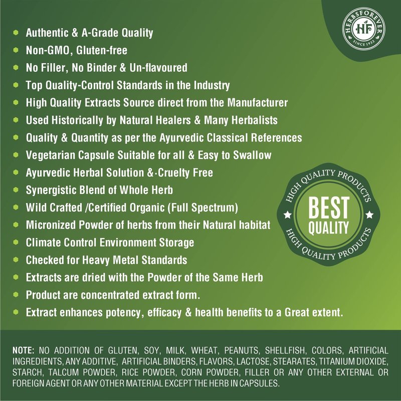 - Non-GMO, Gluten-Free, Vegan, Ayurvedic herbs - Full Spectrum, High quality extracts and micronized powder of Ayurvedic herbs from their natural habitat, No filler, Direct from the manufacturer, Authentic, A-Grade Quality, Sourced from its natural habitat.