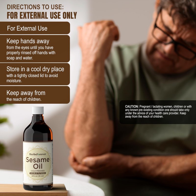 HerbsForever Sesame Oil – Helps to Reduce Vatta (Air) – Helps in Pain & Joints Swelling – Cold Pressed Premium Oil – Non GMO, Organic, Vegan – 16 fl oz – 474 ml