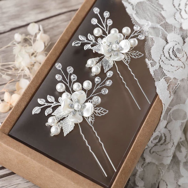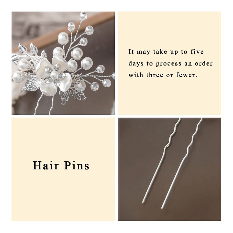 - Bridal pins for hair is made of alloy,pearl and rhinestone.It's made of good quality and not easy to fall.