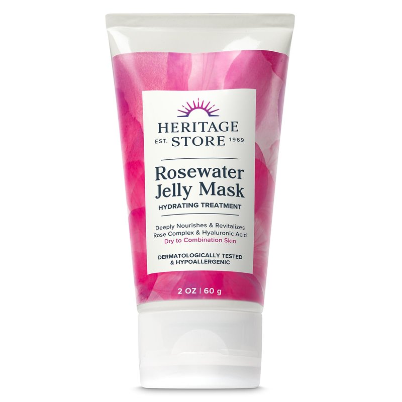 HERITAGE STORE Rosewater Jelly Facial Mask - Hydrating Treatment for Dry Combination Skin, Gel Face Mask Locks in Moisture w/ Hyaluronic Acid and Rose Complex, Hypoallergenic, Vegan, Cruelty Free, 2oz