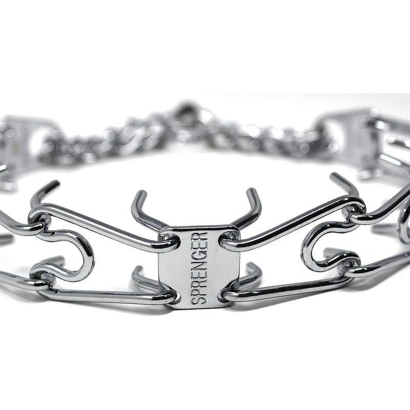- Herm Sprenger Chrome Plated Steel Prong Collar: This Herm Sprenger prong collar is designed for dogs with Neck Size up to16 inches; Overall collar length is 20 inches (50 cm); Wire gauge is 3.0 mm