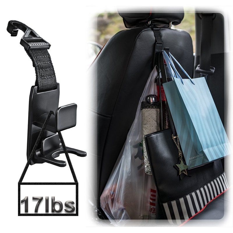 - STURDY AND DURABLE: This HEAVY DUTY headrest hooks are well made of EXCELLENT QUALITY material. They are very sturdy for your heavy purse or groceries and designs allow HANG MORE and more stuff than others. And the nylon fabric strap makes them more durable than all plastic ones, they are magic headrest hooks for car.