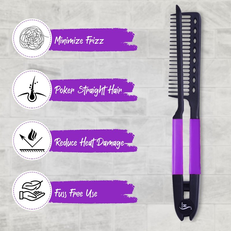 - PROTECTS HANDS - Enjoy a hassle free experience with this multifunctional easy comb. The flat iron comb makes straightening a breeze by holding hair in place and keeps your hands away from the hot plates.