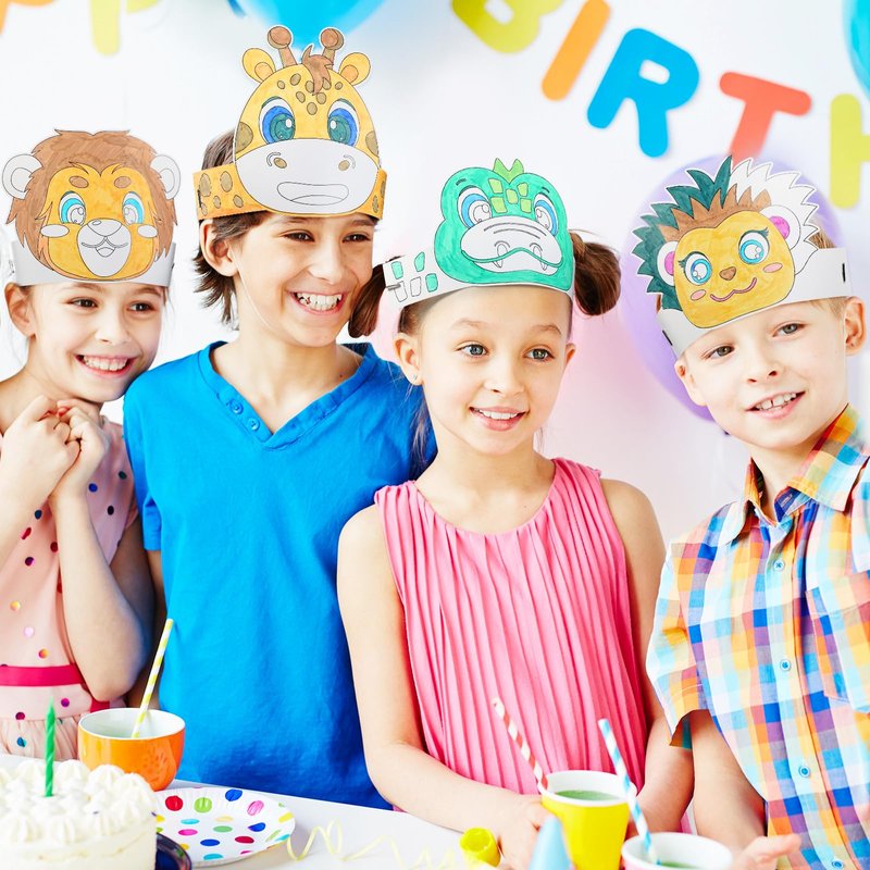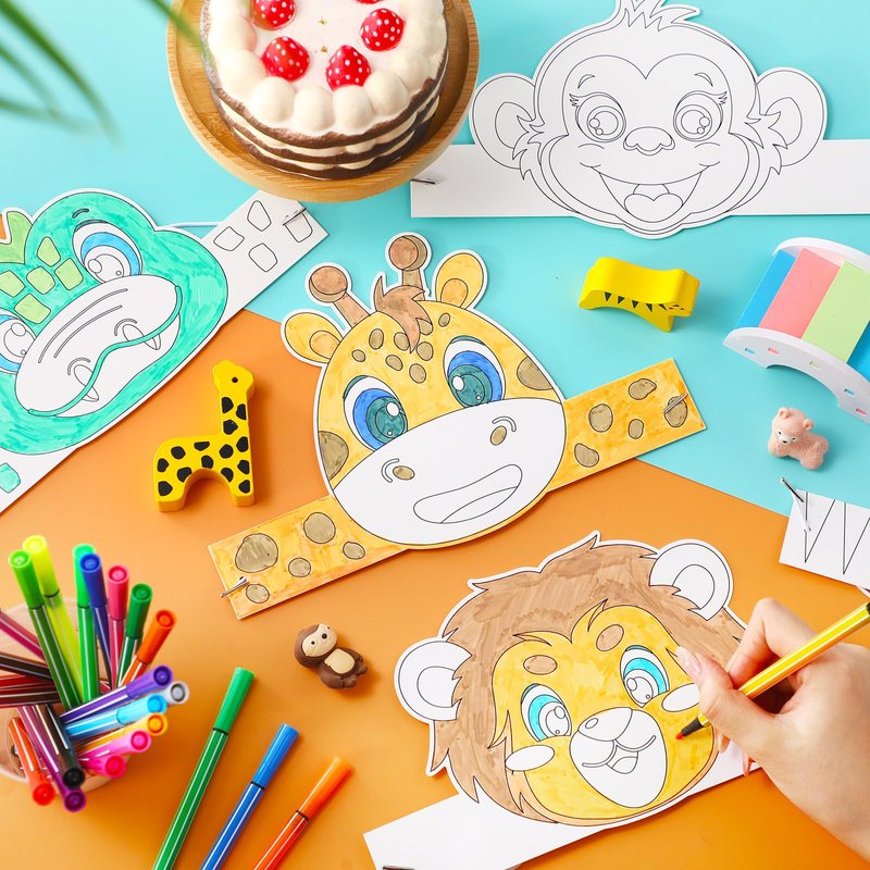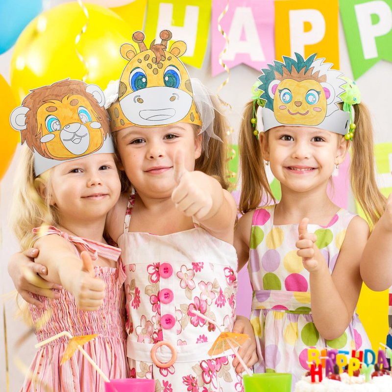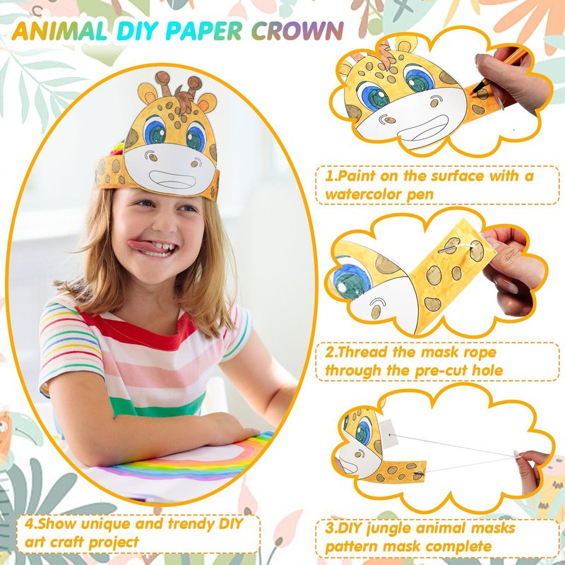- DIY Blank Crown: these cute safari animal party favors are great to unleash your kids' imagination; You can use the marker pen included to paint in blank areas, make their own unique party crowns, then put on a rope, and wear the finished product on your head for your jungle safari birthday party