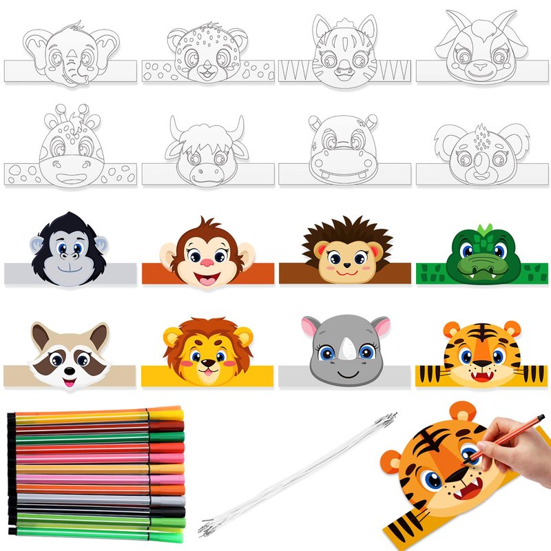 - Coloring Craft for Kids: the package comes with 16 pieces jungle animals paper headbands in different styles, with 24 pieces of colored markers and 16 pieces white ropes, enough quantity and nice combination will bring you a pleasant art craft time, they are nice photo props and decorations