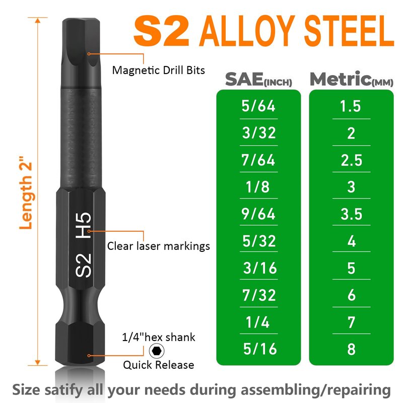 - Versatile and Widely Used: This Metric & SAE hex driver set is ideal for a wide range of applications, including DIY projects, automotive repairs, woodworking, and more. This hex key drill bit set provides the versatility you need to tackle any job.
