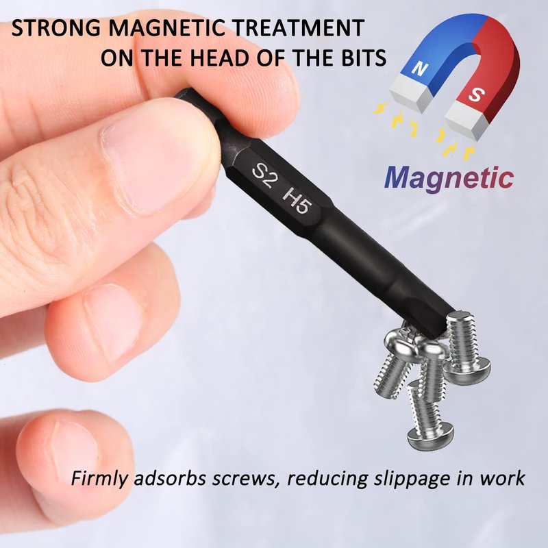 - Easy Identification and Use: Allen wrench bits for drill Each bit is clearly marked with laser etching, making it easy to identify the size and type of bit you need. The magnetic feature also makes it easier to handle and use the bits without worrying about them slipping out of place.