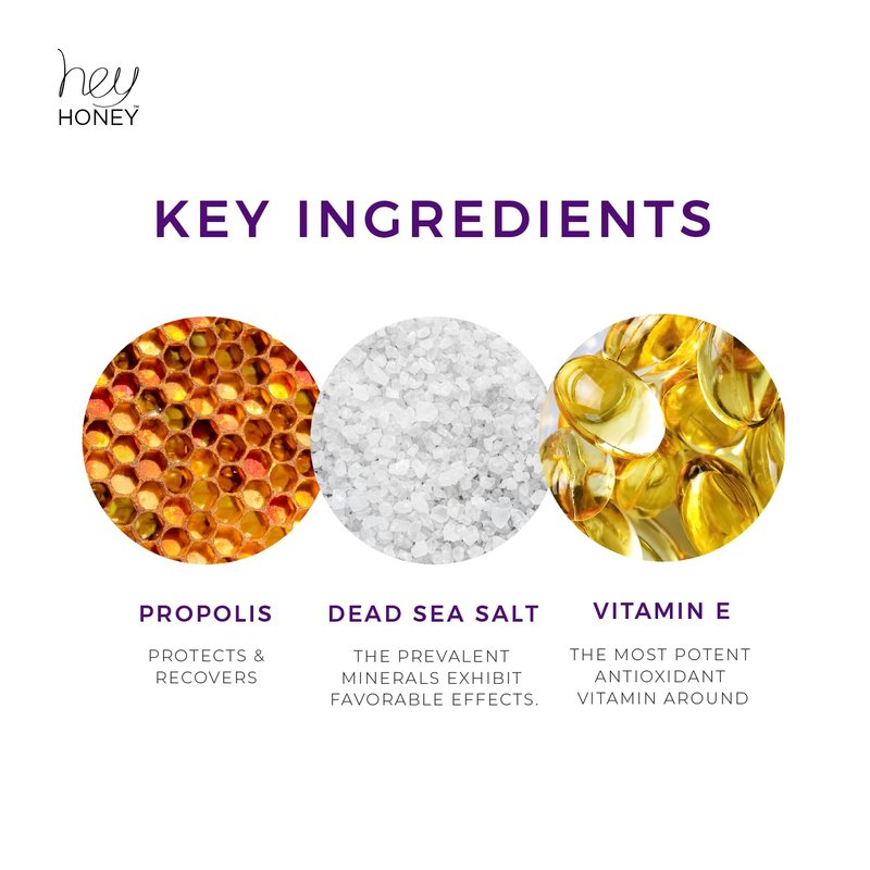 - BEE PROPOLIS & DEAD SEA SALT: Dead Sea Salt contains 10x more minerals than normal salt. Bee Propolis is known for promoting skin recovery & hygiene to keep the skin feeling clean and looking healthy.