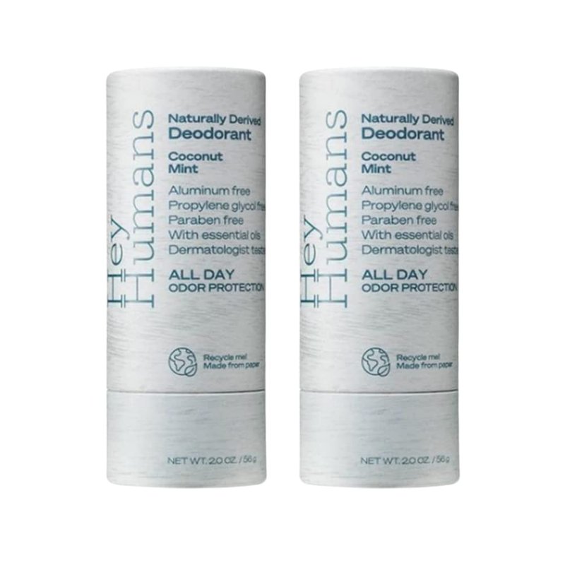 Hey Humans Coconut Mint Vegan, Aluminum Free Deodorant with Natural Ingredients, Coconut Oil & Shea Butter | All Day Odor Protection for Women & Men | Earth-Friendly Packaging, 2 oz. - Pack of 2