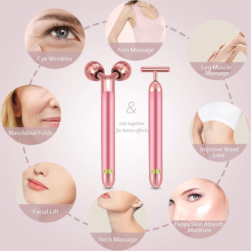 - PERFECT DESIGN: Electric 3D Roller Face Massager is with exquisite small diamond shape cut which makes the massaging more smoothly. T Shape Beauty Bar is 6,000 vib. per/min as same as the 3D roller massager, making it perfect for skin massaging