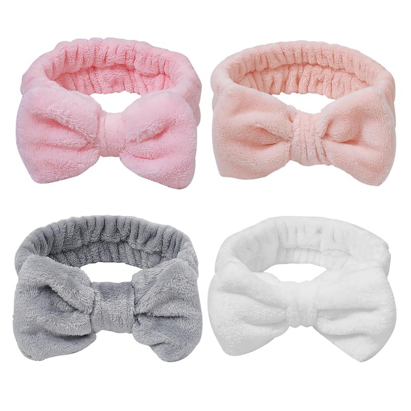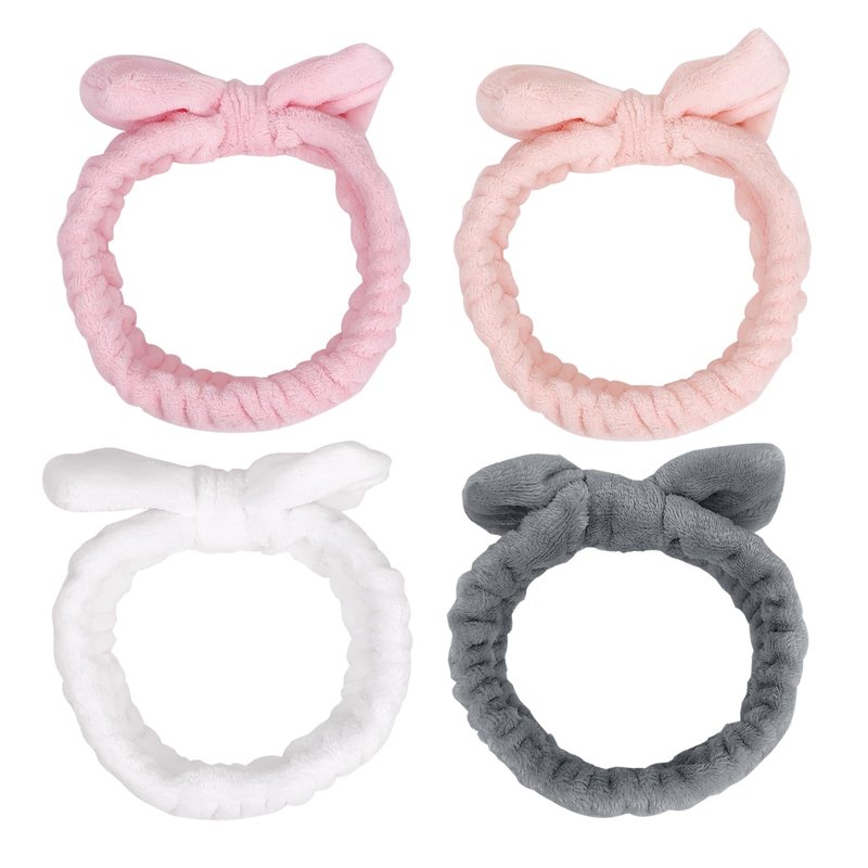 HFZRZFH 4 Pcs Cute and Simple Bow Tie Hair Band Spa Headbands for Girls and Women, Ideal for Face Washing, Skincare, Makeup, and Spa