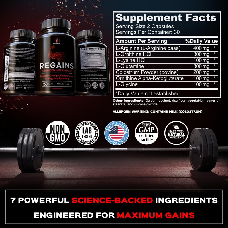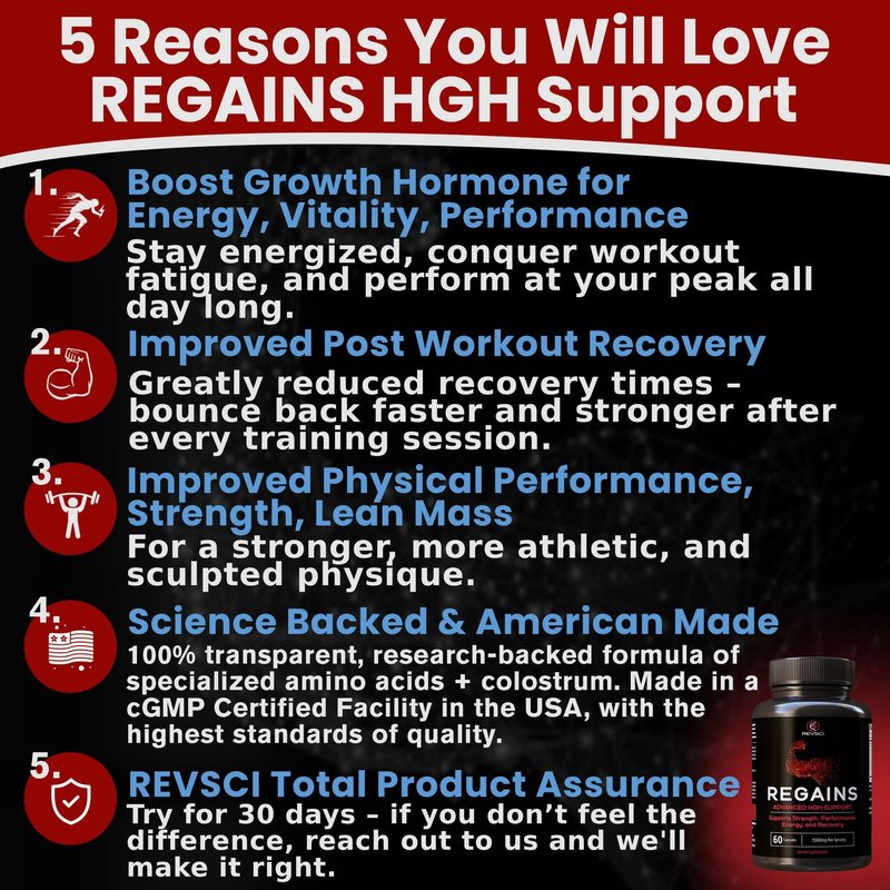 - Unlock Your Potential: Regains HGH Support, a premium workout supplement for men, turbocharges the body's growth hormone levels, enhancing muscle growth for men and fueling superior strength. Turn your body into a lean, fit, anabol power-packed machine