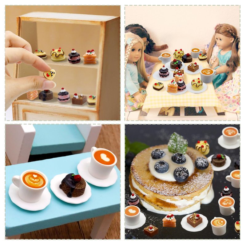 - MEET YOUR NEEDS: This miniature cakes dessert coffee model set comes with 12 cake desserts, 6 different coffees, and 6 coffee mats to make sure you have everything you need for a perfect mini afternoon tea party.