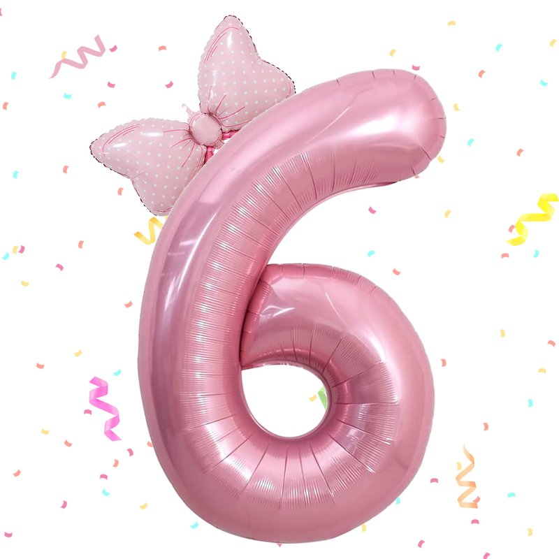 HIBILDER 2PCS Pink Number 6 & Mini Bow Balloon, 40in Birthday Party Decorations, Girls 6th Party Supplies, Safe Aluminum Foil Material