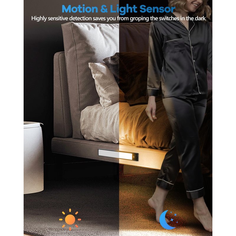 - 【Motion Light Sensor, Multi Working Modes to Choose】The motion sensor closet light has 3 working modes, always on, off, and sensor mode (auto mode). In auto mode, these wireless LED lights will automatically turn on when human motion is detected within 16.5 feet in a dark environment, and it will automatically turn off after 20 seconds if no motion is detected.