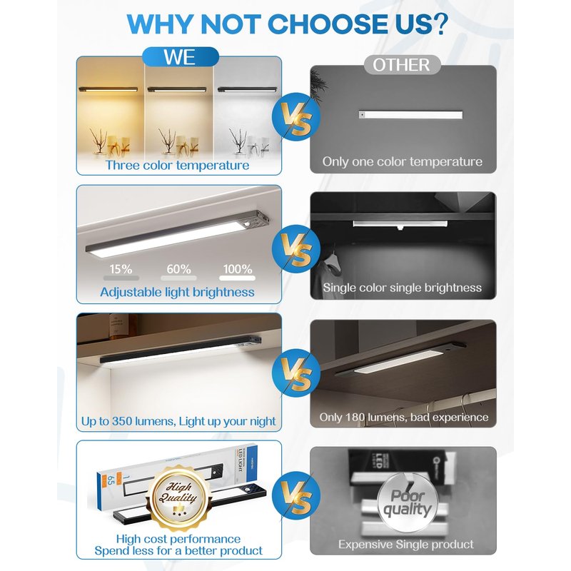 -Longer LED Life: LED Life expectancy of more than 80000 hours, longer than other 50000 hours LED closet lights.