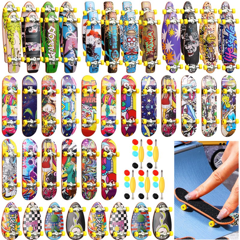 - Cool Collection with Various Styles: turn your finger skating experience into an addictive hobby with a well defined collection of mini skateboard; The pack comes divided into 32 special shaped finger skateboards (16 assorted styles, 2 of each) and 18 regular skateboards (18 random styles), offering more fun and imagination