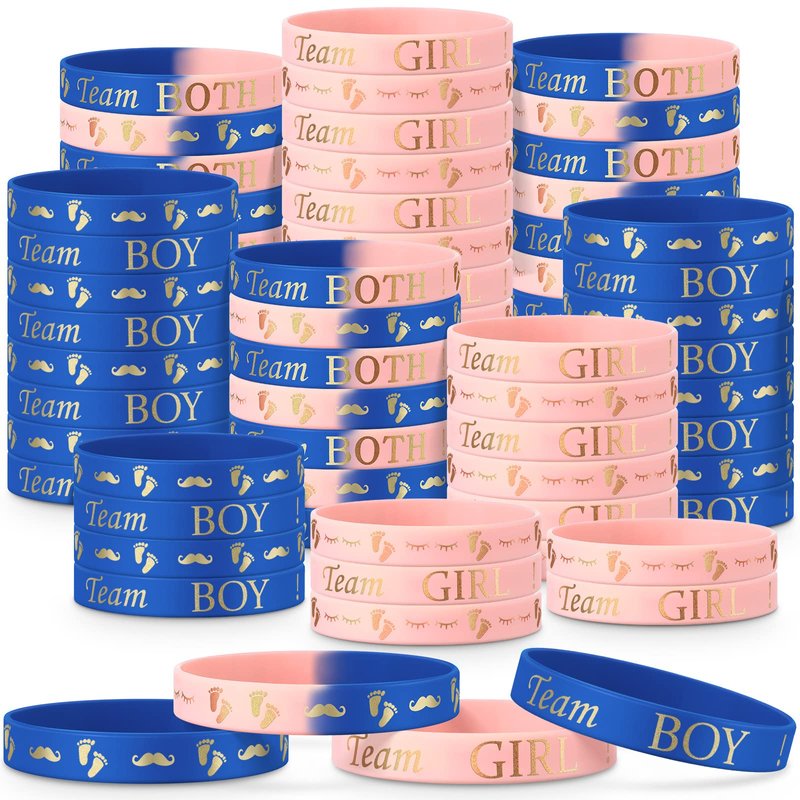- Wide application: gender reveal rubber wristband bracelets can easily create a joyful atmosphere, making your gender reveal party impressive and attractive; With sufficient quantity, these lovely gender bracelets can be matched with other gender reveal party supplies like announcements, invitations, gender reveal games, balloon boxes and so on