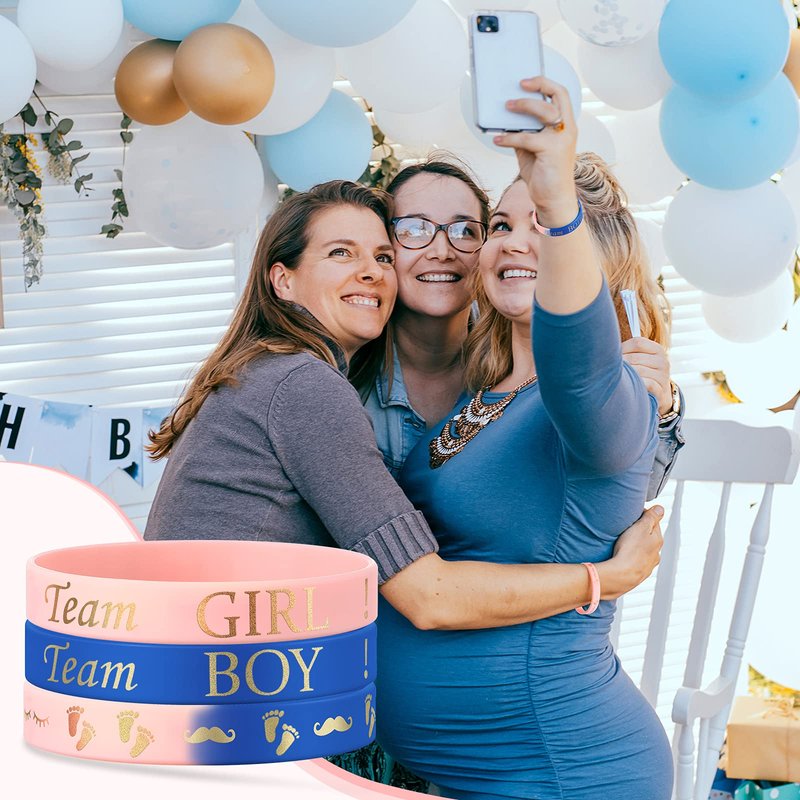 - Enjoy a fun reveal game: let your friends and family use their intuition to test the gender by putting on these fun gender reveal wristbands, your party guests will enjoy guessing by turns whether you're having a or a ; In addition, if you announce the gender in advance, these rubber bracelets will be nice party favors for your guests