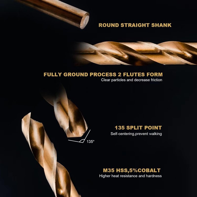 - High Quality Material - Premium High Speed Steel M35 (Cobalt 5%) provide extended tool life compared to ordinary drill bits when drilling hard materials.