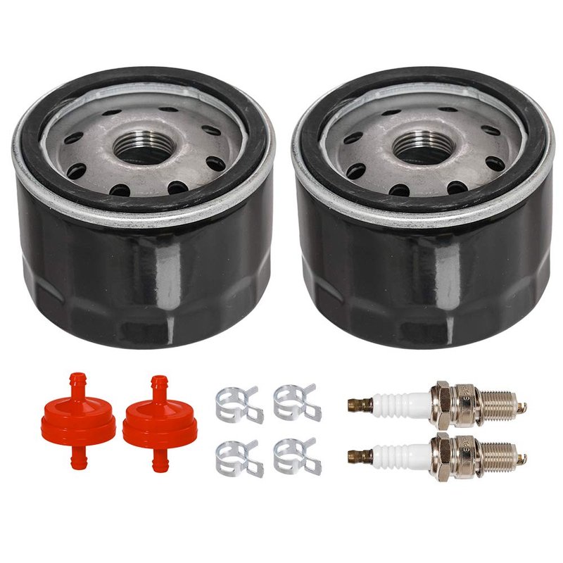 - Oil filter high performance design for outstanding filtration, traps 99% of harmful contaminants. Package included: 2 x oil filter, 2 x fuel filter, 2 x spark plug, 4 x clamps