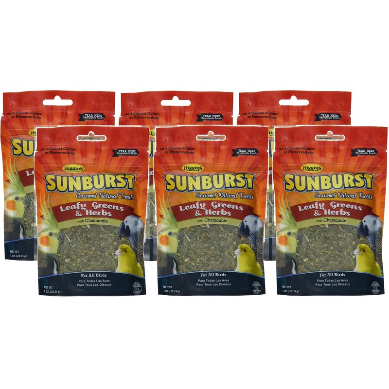 Higgins 6 Pack of Sunburst Leafy Greens & Herbs Gourmet Treats for All Birds, 1 Ounce Per Pack
