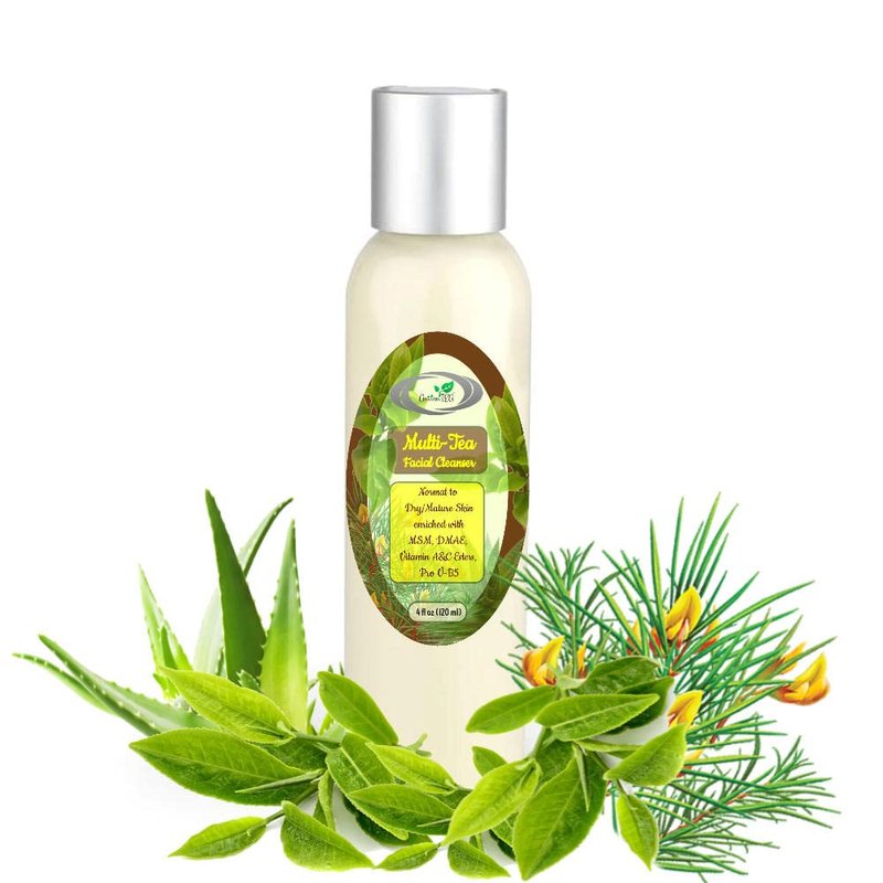 AntioxiTEA MULTI-TEA Antioxidant Facial Cleanser for Normal to Dry/Mature Skin with with MSM, DMAE, Retinyl Palmitate (Vit. A Ester), Vit. C-Ester, Pro-Vit. B5. A creamy, richly textured, and very moisturizing lotion-like cleanser formulated with antioxidant-rich organic teas: Green Tea, White Tea, and Rooibos Tea. This facial cleanser offers rich and soft lather while gently cleansing and refreshing the skin without suds. This facial cleanser is found to be calming, soothing, antioxidant, and superb moisturizing, and is especially recommended for normal to dry/mature skin. Hydrating organic olive oil, smoothing MSM, toning DMAE, multi-beneficial neem, and supportive vitamins like A, E, and B5, leave skin feeling super soft and nourished. 87% Organic Content, Vegan, Gluten-Free, Phthalate-Free, Paraben-Free. Produced in the USA. A.M. and P.M. Cleanse your face and neck every morning and night. Always cleanse in circular motions in an upward direction. Be gentle with your skin; you do not need heavy pressure to cleanse. You don't need to use anything but your hands; washcloths are optional.