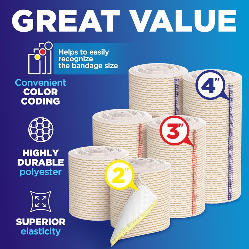 - ✅ 3 DIFFERENT SIZES INCLUDED – You’ll receive two 2”, two 3”, and two 4” rolls of premium elastic bandage wraps. Maximizing possibilities for wrapping various child and adult injuries keeps you ready for all of life’s surprises.