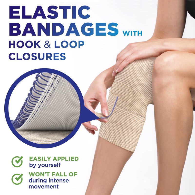 - ✅ EASY-TO-USE CLOSURES – This compression bandage wrap comes with strong hook-and-loop closures that provide more reliable and quicker fastening than elastic clips, which is crucial in an emergencу.