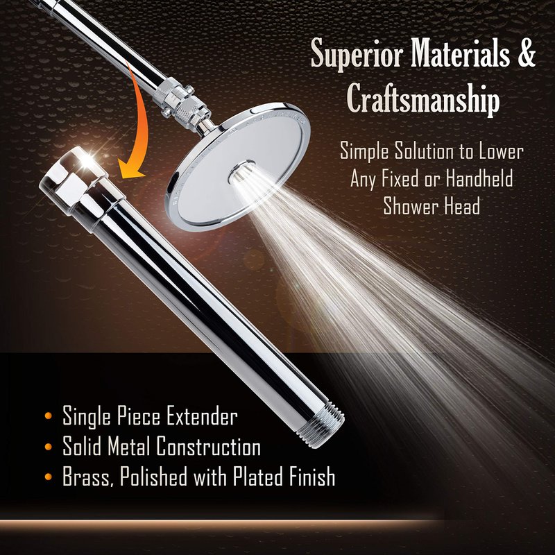 - 6" Shower Arm Extension lowers your shower head/ handheld unit, making it more easily accessible
