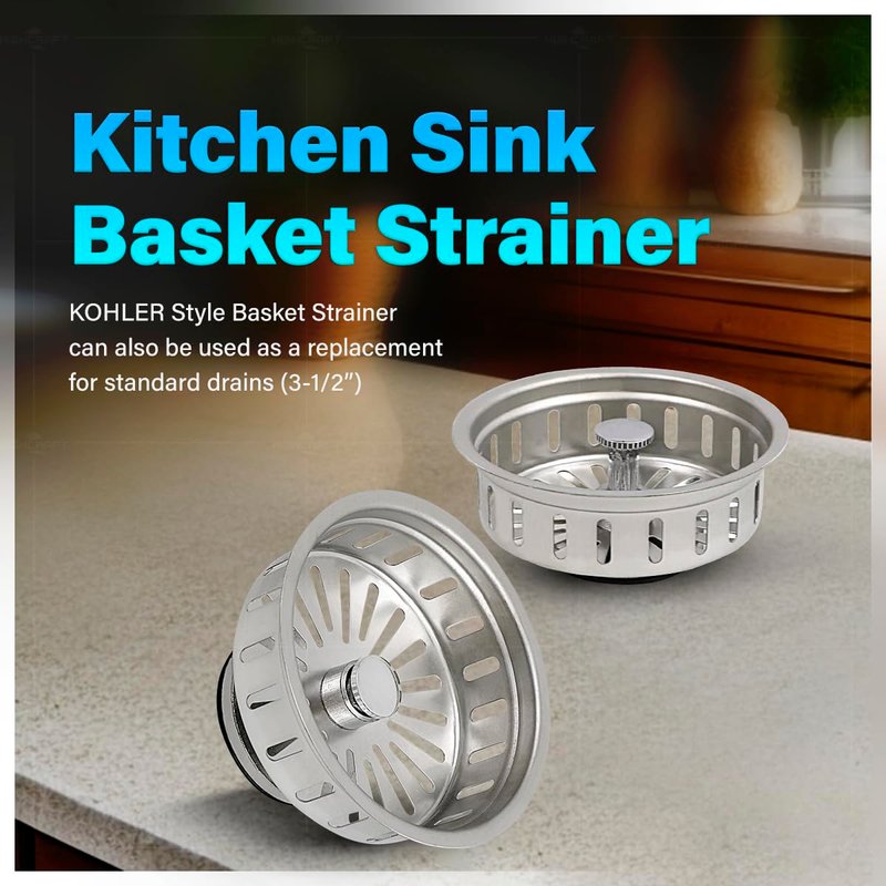 Highcraft 97353 Kitchen Sink Basket Strainer Replacement for Kohler Style Drains Stainless Steel Stopper (Can Vary in 2 Styles), 3.5" (Pack of 1)