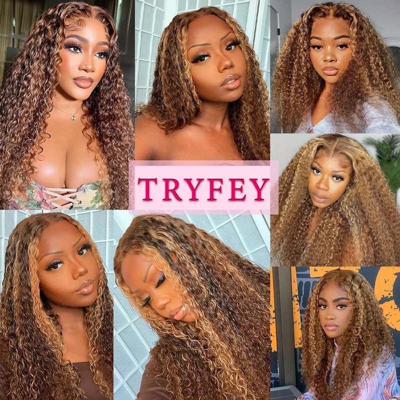 - 💯Highlight 13x4 Water Wave Lace Front Wig Material: Human hair wigs for women use 10A 100% unprocessed brazilian virgin hair. Tight and neat, no dry end, silky soft and healthy, comfortable against skin. Can be easily dyed, bleached, permed into whatever style you like.