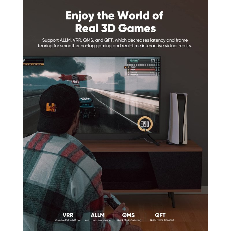 - 【HDMI Cable For Game Enthusiasts】 This HDMI Cable is not limited to 4K@60HZ, it can break through 4K and achieve 8K ultra-high image quality. It can also achieve a super smooth picture of 4K@120HZ. Its latest game mode supports variable refresh rate, maximizes the value of the graphics card and CPU, and is more accurate in the processing of rendered images. When the scene is switched, the refresh rate will change accordingly to obtain a smoother and more detailed picture.