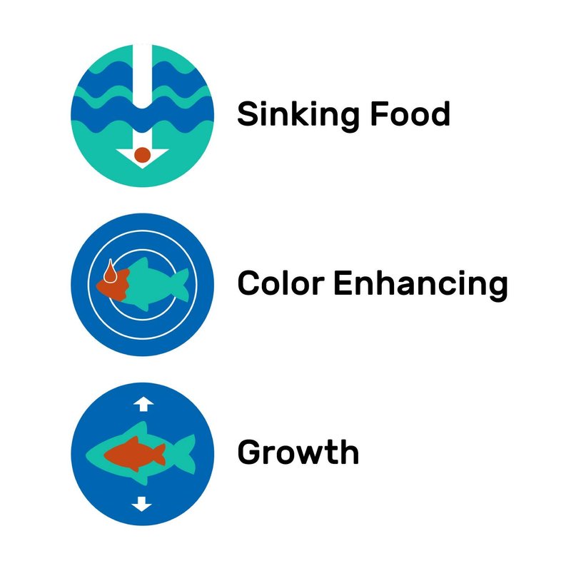- High levels of vegetable matter that bottom feeders prefer, along with highly nutritious spirulina, silkworm and krill