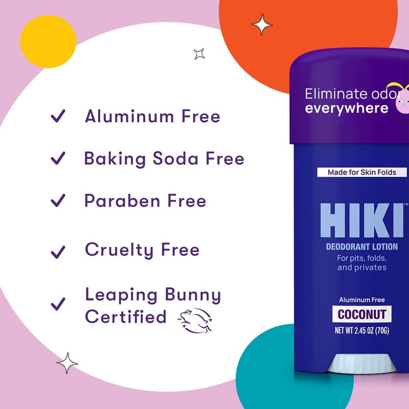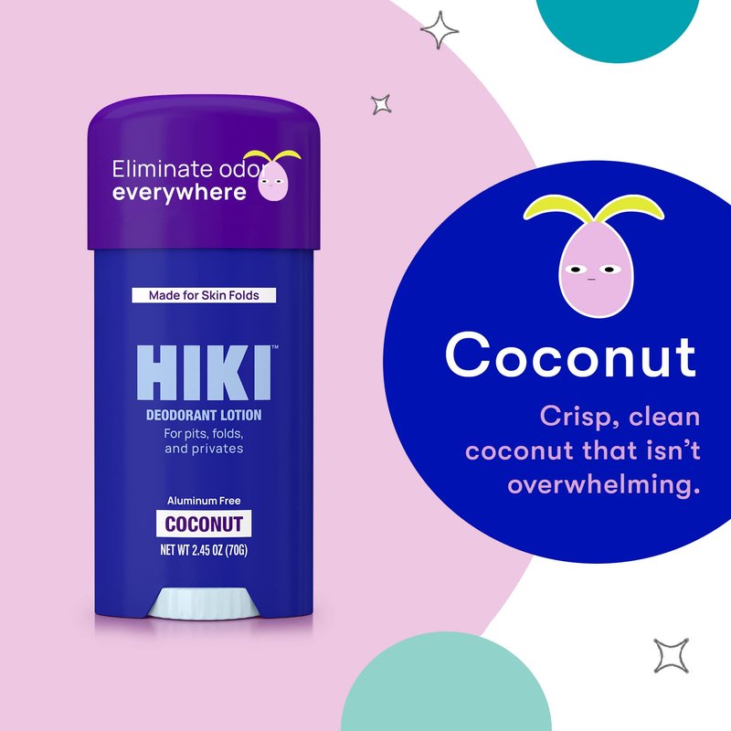 - DEODORANT CREAM LOTION MADE FOR SKIN FOLDS -A little goes a long way for this deo lotion. HIKI is designed as a sensitive skin deodorant with mandelic acid, formulated perfectly for any area where skin tends to rub together; uniquely formulated to provide all-day body odor control when you need it most!