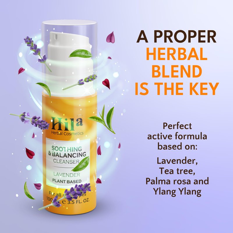 Hila Herbal Cosmetics Lavender Balancing & Soothing Facial Soap Facial Cleanser - Non Drying & Moisture Balance - Deep Cleansing Face Wash - Acne Prone Makeup Remover - 100ml