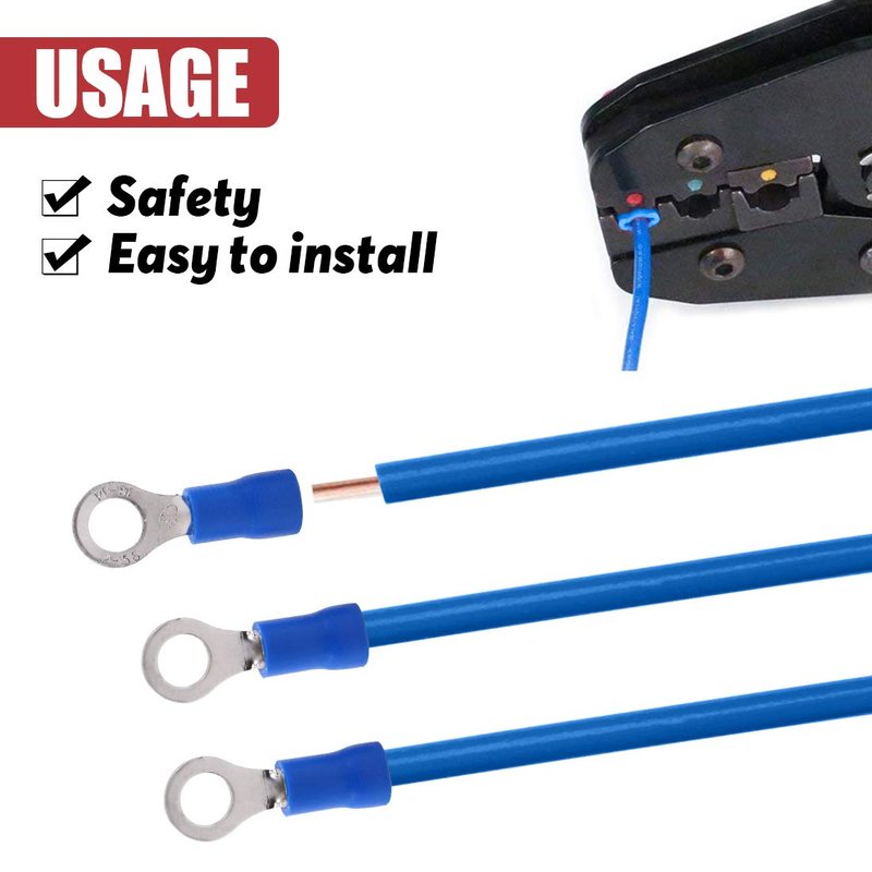 Hilitchi 100Pcs 16-14AWG Insulated Terminals Ring Electrical Wire Crimp Connectors (Blue, M5)