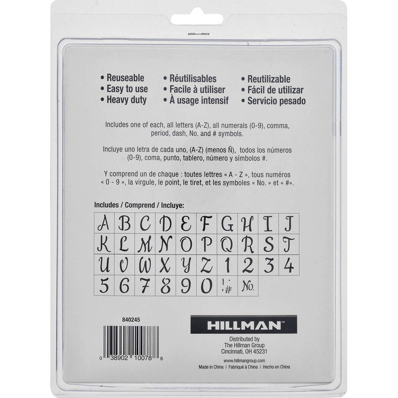 - INCLUDES - Stencil pack contains letters A-Z, numbers 0-9, and punctuation marks (comma, period, dash, "No.", and # symbols.)