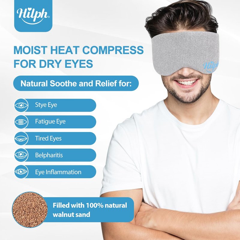 Hilph Microwave Warm Eye Mask for Dry Eyes, Heated Eye Mask Moist Heat Warm Eye Compress for Blepharitis, Styes, Tired Itchy Eyes, Eye Strain, Fatigue Eye Treatment (Grey)