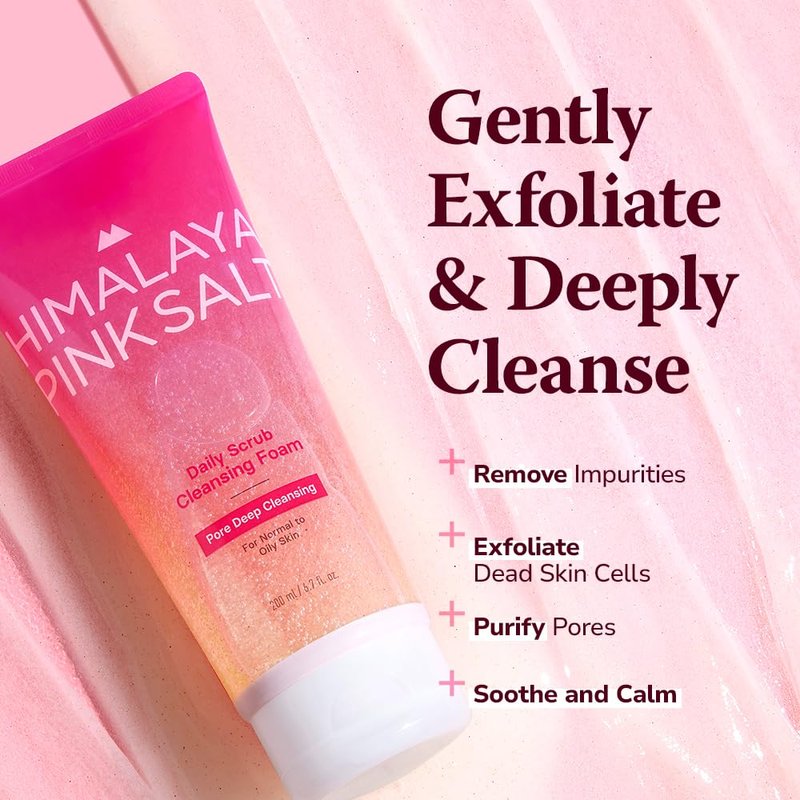 HIMALAYA PINKSALT Daily Scrub Cleansing Foam Pore Deep Cleansing, 6.7 fl oz 2 Pack - Christmas Gifts, Stocking Stuffers, BHA Facial Scrub & Pore Cleaner for Oily Skin, Low Alkaline, Korean Skin Care