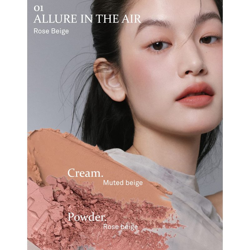 - ALLURE IN THE AIR: The cream formula is a muted beige that adds depth to your cheeks, while the powder formula is an elegantly toned-down rose beige that provides the perfect finishing touch. The two formulas work together to create a seamless, natural-looking flush that enhances your complexion.