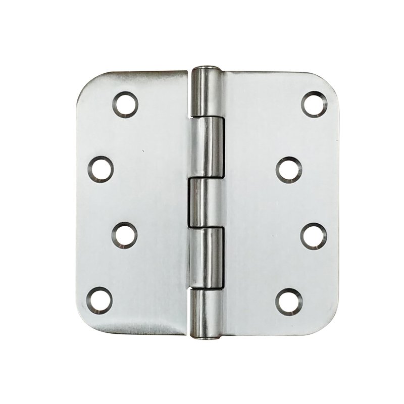 4” x 4” with 5/8” Radius Corner Stainless Steel - 316 Grade Gauge: 2.5MM, (.097" ) For Door Thickness: 1 5/8" to 1 3/4" thick doors Includes matching screws. Non-Removable Pin - Pin is only removable by loosening the set screw and these hinges are perfect where security is an issue. Sold in sets of 3.
