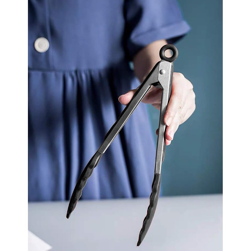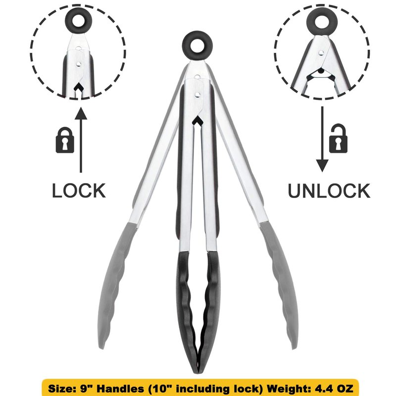 - PACKAGE INCLUDES - 3 × 9-Inch kitchen silicone tongs (Black) # 9" Handles (10" including lock) #