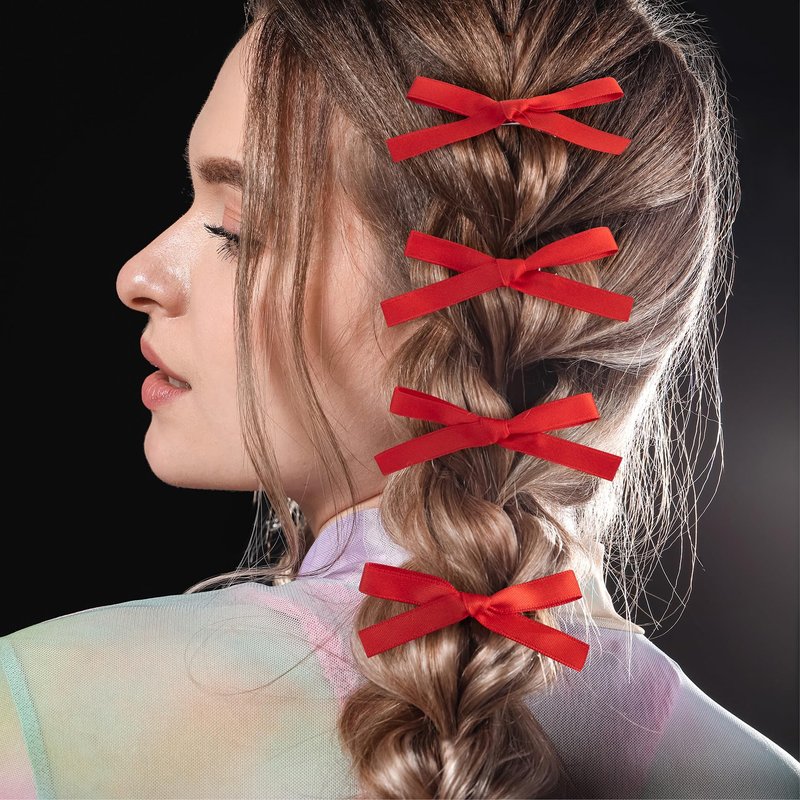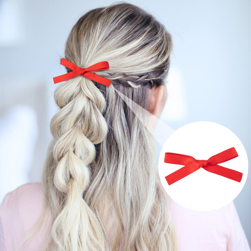 - Wide Hairstyle: These red hair bows can help to make ponytail, twist braid, bun, half-do, braid, side ponytail, which can fix your hair for a long time without loosening or falling out.
