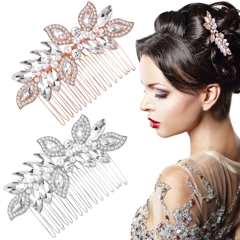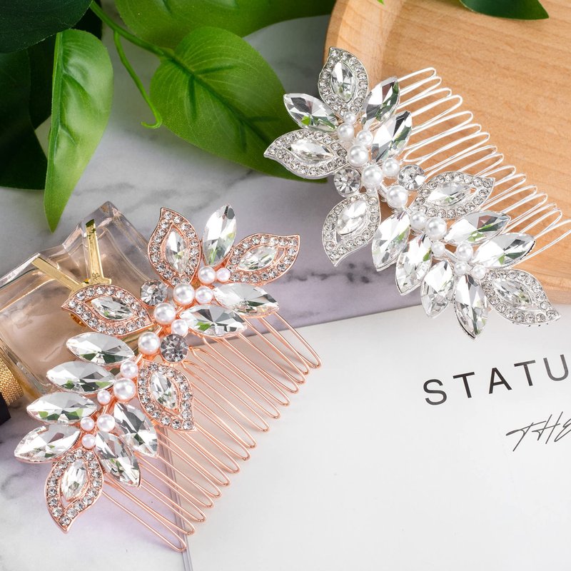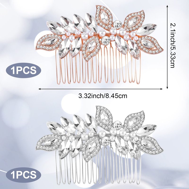 - Exquisite Design: Decorated with Rhinestone Leaves + Sparkling Crystals + Artificial Pearls, our bridal hair combs sparkle in the sun, adapt to different hair styles, perfect addition for wedding dresses and complete your big day, be a dazzling bride!