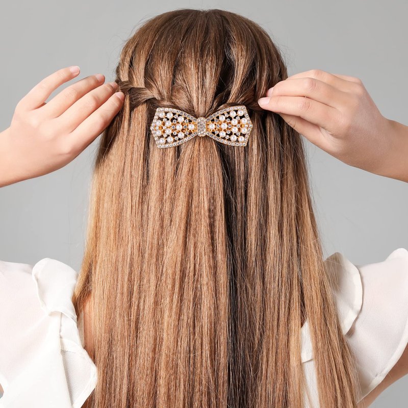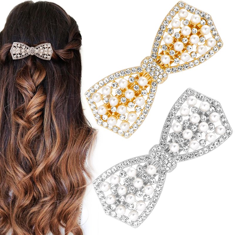 - Bling Bow Hair Clips Design: The rhinestone bow barrettes for girls hair accessories with classic silver color and gold color, suitable for different hair colors. A Pearl Bow design adds more beauty to your special moment. Suppports charming styles, elegant, modern, fashionable and beautiful.