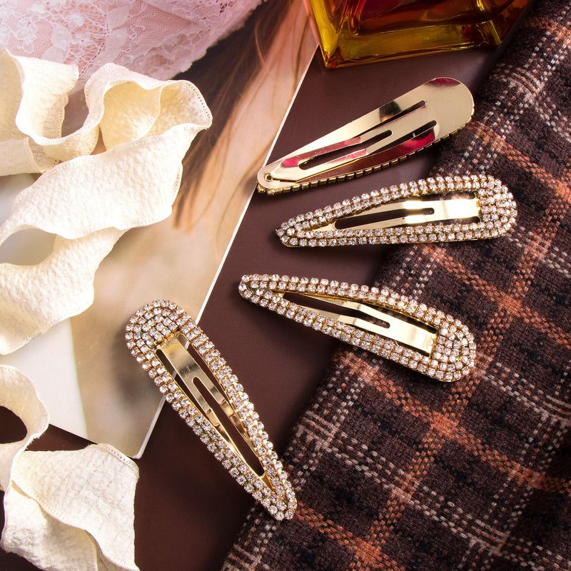 - Package Included: You will get 4pcs rhinestones snap hair clips for waterdrop shape + small rhinestones embellished, which will sparkle under sun or light, stylish and elegant, suitable for thin or thick hair, great hair accessories for women girls! Size: 3.06x0.81inch/ 7.79x 2.07cm.